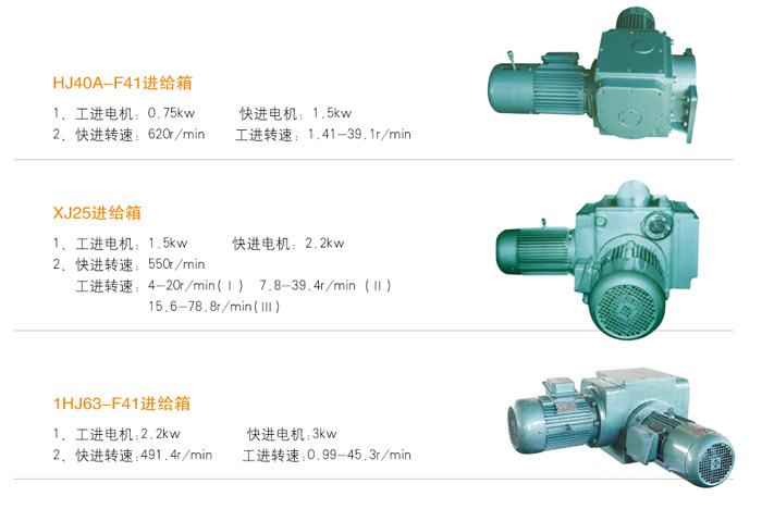 HJ40A-F41進(jìn)給箱信息:工進(jìn)電機:0.75kw 快進(jìn)電機:1.5kw 2、快進(jìn)轉(zhuǎn)速:620r/min 工進(jìn)轉(zhuǎn)速:1.41-39.1r/min